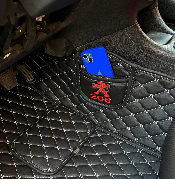 کفپوش گلدوزی چرمی خودرو نسل جدید کفی ماشین است که بدون نیاز به باز کردن صندلی داخل خودرو نصب می شود. این کفپوش ها همگی دارای جیب موبایل و زیرپایی ضد خط خش زیر پای راننده هستند. متقاضیان عزیز می توانند لوگو روی جیب موبایل کفپوش در سمت راننده و شاگرد گلدوزی کنند که ظاهر بسیار شیکی به کفپوش خودرو شما می بخشد. لوگو مطابق لوگو ماشین شما روی جیب گلدوزی می شود و هزینه اضافی دارد .